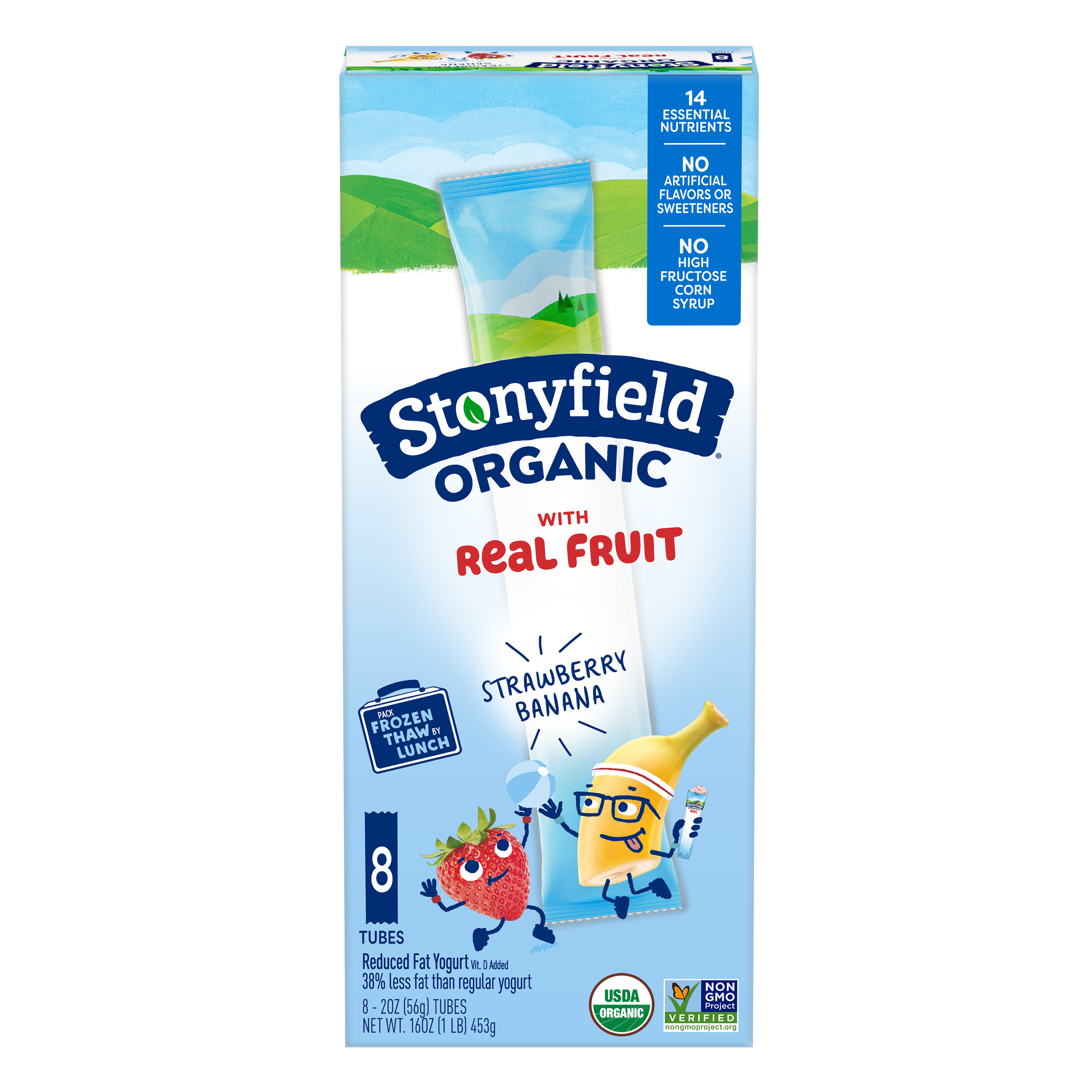 Stonyfield Organic Kids Strawberry Banana Lowfat Yogurt Tubes, 8 Ct