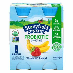 Stonyfield Organic Probiotic Strawberry Banana Lowfat Yogurt Smoothies, 6 fl. oz., 4 Ct