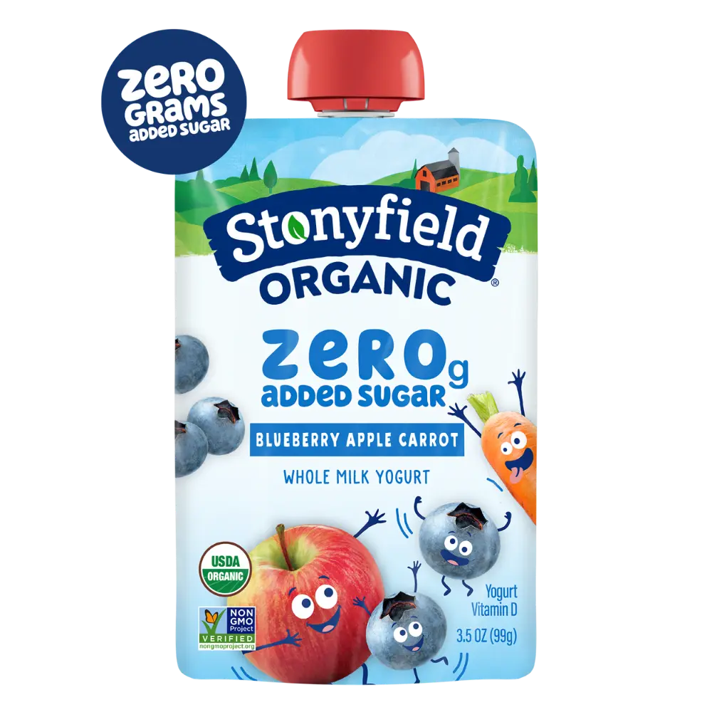 Stonyfield Organic Kids Zero Grams Added Sugar Blueberry Apple Carrot Whole Milk Yogurt Pouch, 3.5 oz.